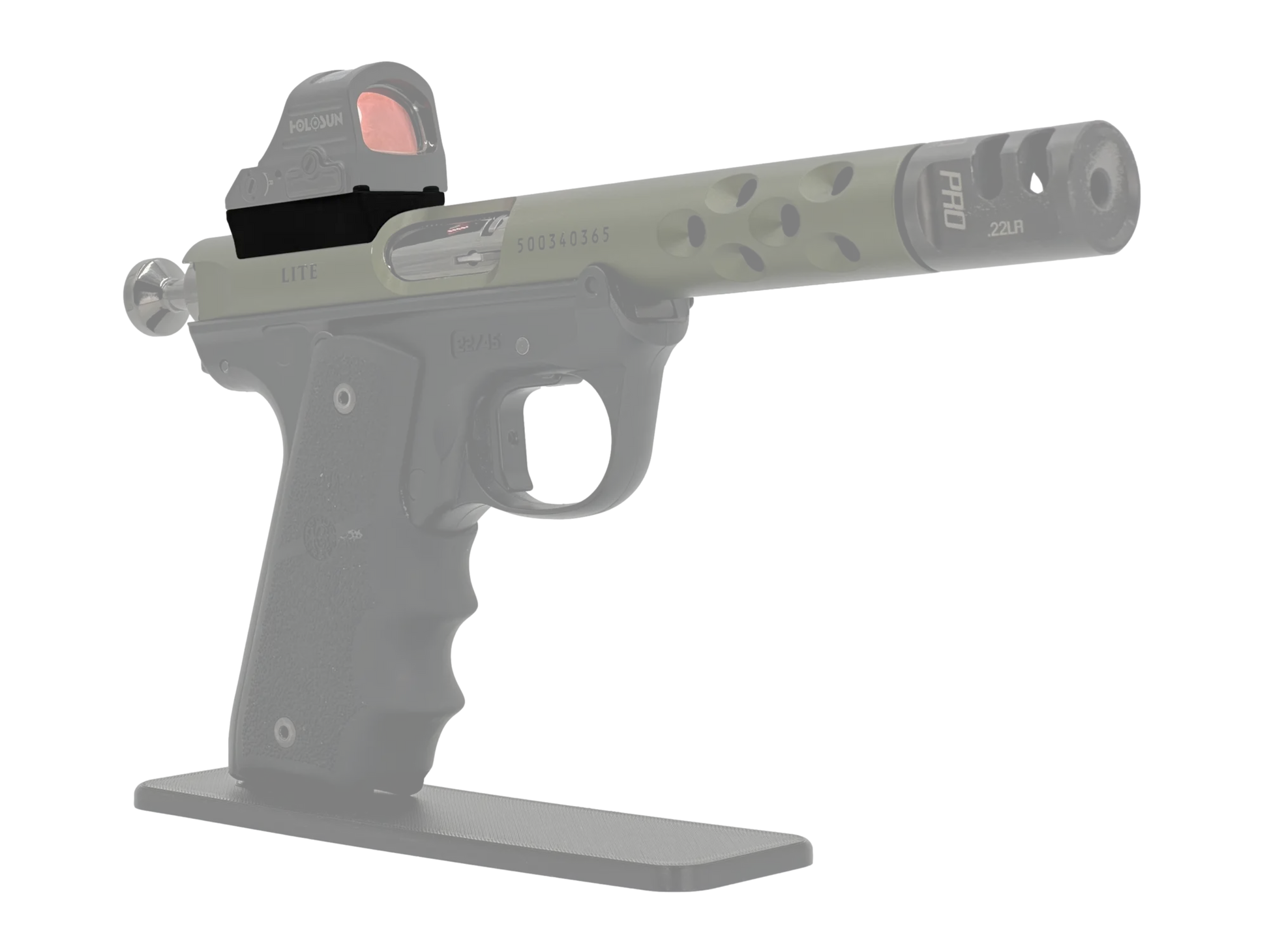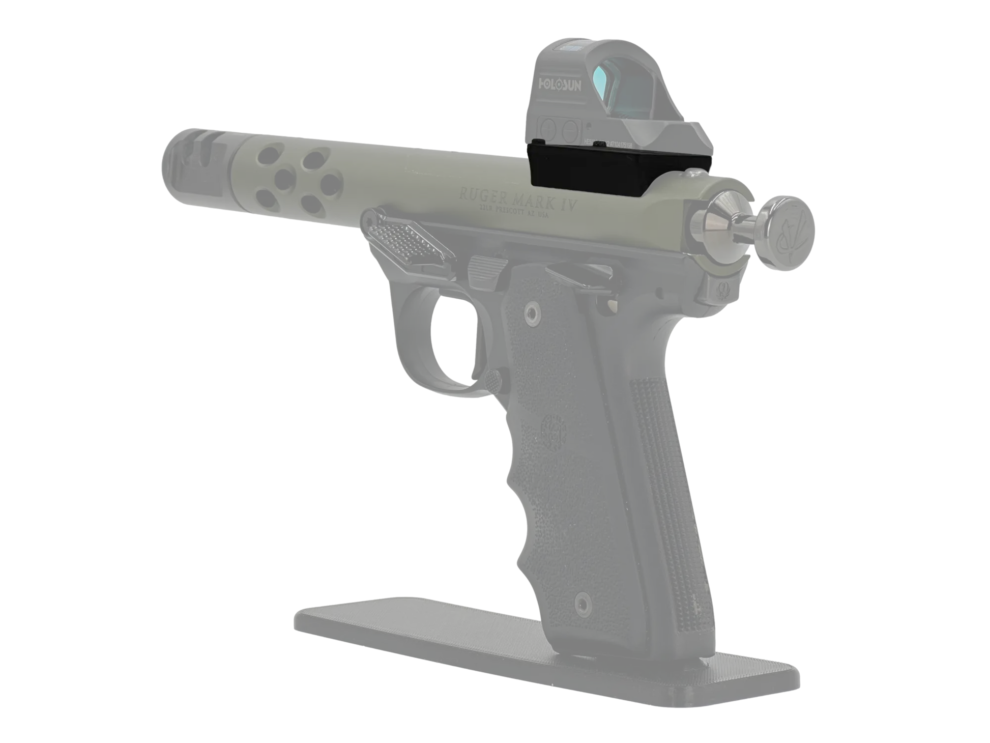 The LowPro™ Low-Profile Dovetail RMR Red Dot Mount for Ruger Mark I/II/III/IV pistols is an ultra-low-profile mounting plate for attaching a red dot with an RMR footprint directly to the barrel of a Ruger Mark I/II/III/IV.